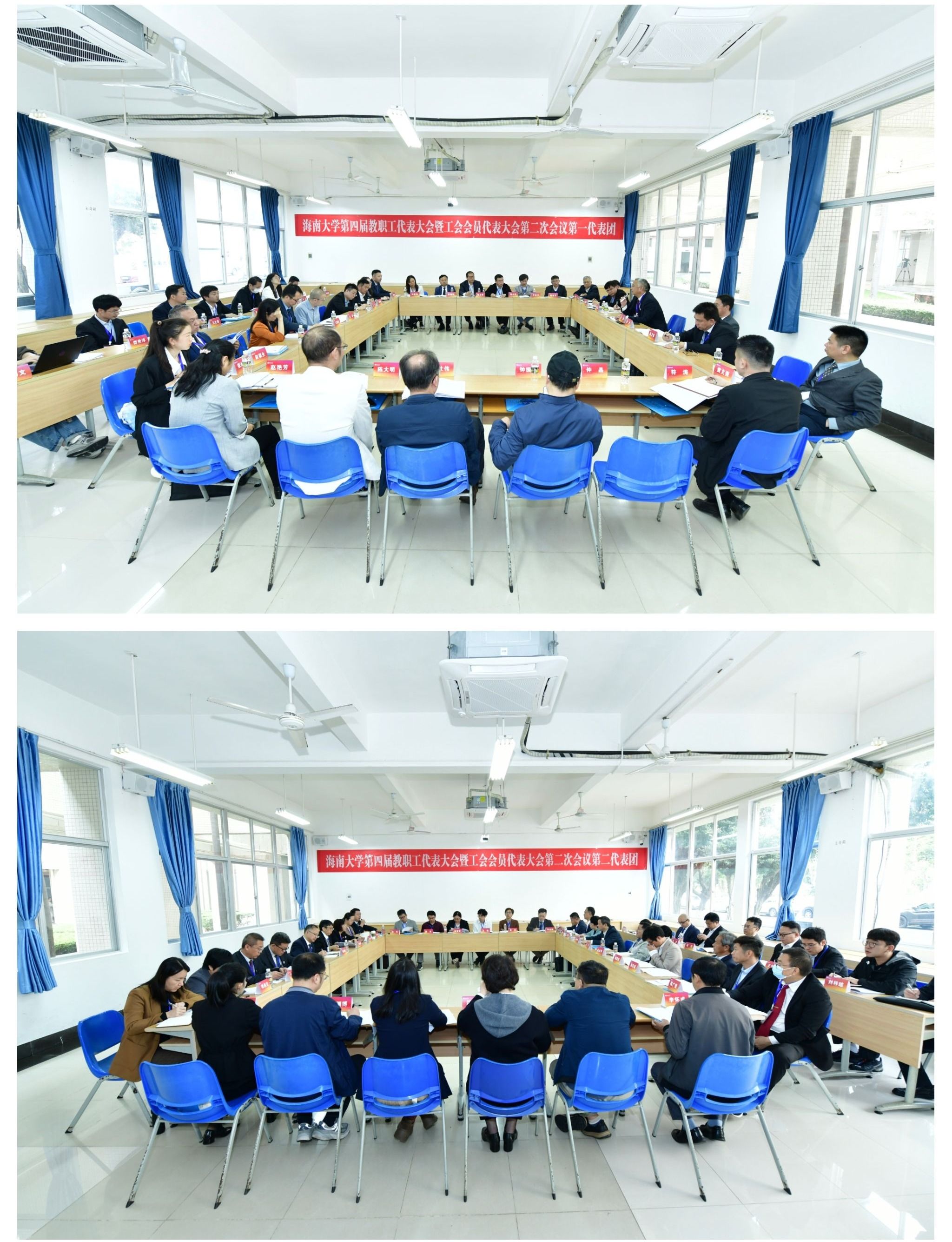 1月18日,海南大学第四届教职工代表大会暨工会会员代表大会第二次会议在思源学堂大礼堂召开。各代表团分组讨论。宣传部 摄